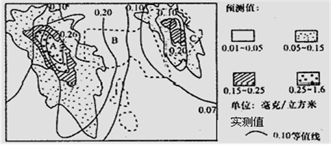 其原因:一方面,该预测模型反映的是工业污染源排入的SO2扩散情况及其浓度变化规律,据此能够较为准确地预测工业区内SO2浓度分布值(2分);由于1月份该市盛行西北季风污染小,故预测值低(2分)。