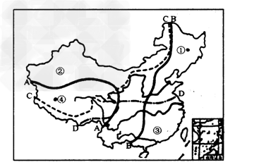 A.①地位于青、藏之间 B.②地跨陕、甘、宁、晋地区 C.③地主体位于川、渝地区 D.④地跨粤、桂、黔之间 |