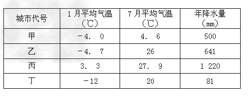 (2)下表中数据分别为我国四大地理区域中四个城市的气候资料。