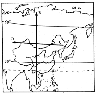 (2)图中C地与D地自然景观的差异,主要是由于水分条件变化形成的。形成这种水分条件变化的根本原因是______________________。这种从C地到D地所表现出来的地域分异规律在________________(低、中、高)纬度表现较为明显。