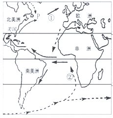 A.洋流①对欧洲西部有减湿作用 B.洋流②对非洲西岸有增温作用 C.P处因寒暖流交汇形成世界著名渔场 D.美国东岸海域污染物不会影响欧洲西岸 |