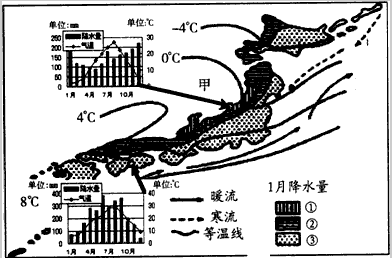 【小题1】阅读关键词 “积雪隔绝了地面与大气,阻止了它们之间的热量交换” 然后就能得出甲虚线为雪盖地温(变化小),其次读图,积雪深度为为0的气温变化应较大,故判断丙为积雪深度。