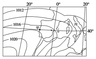 4、单选题 下图为世界某区域图,图中曲线为某季节等压线(单位:hPa)。读图,回答下列各题。