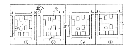 (6)?该活动小组某日参观了当地规划局,发现了规划局为某镇新街街道布局设计的4种方案的图纸(如下图①②③④),请选出可使街道建筑都有较好日照的方案_________________(填出相应的图纸序号)。