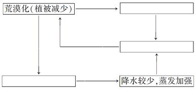 (4)请根据地理环境整体性原理,将乙图中贺兰山以西荒漠化自然因素(大气、水、岩石、土壤、生物等)之间的关系选择填入下列表格中。(6分)