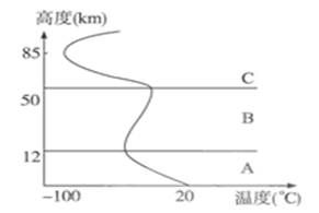 (1)从A、B、C所处的高度分析,A为对流层,B为平流层。