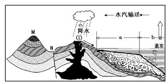 (3)水循环按其发生的空间范围不同,可分为海陆间循环、海上内循环、陆上内循环。图中所示水循环位于陆地和海洋之间,所以为海陆间水循环。①处岩石由岩浆喷发形成,为岩浆岩,岩浆岩在外力作用下可以转化为沉积岩。