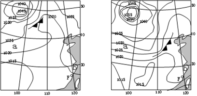 3、单选题 雾霾指空气中悬浮大量微小水滴和颗粒污染物。下面左右两图分别是中央气象台公布的“某区域2013年12月7日14时和8日8时近地面等压线(百帕)图”。完成以下问题。