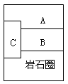 (3)在地壳等厚度线图中,0千米表示______(界面),说出该区域地壳厚度大致分布规律_________,根据我国大陆部分地壳等厚度线图可以推断出,玉树地震的震源位于_______。(填地壳、地幔或地核)(3分) 参考答案:(1)A(1分) 本题解析:本题考查地震波的传播与地球的内部圈层。(1)在地球的大范围固体表面,海拔越高,地壳越厚,故玉树位于青藏高原,海拔高,地壳厚度大,故地震波到达的晚。(2)了解地球内部圈层目前主要依靠地震波;图示A的传播速度较B慢,故判断为横波,B表示纵波。(3)地壳是指莫霍界面以上的部分,故地壳厚度为0,表示位于莫霍界面上,图示等值线的分布规律,直接读图即可。材料反映该次地震的震源位于33KM处,而大陆地壳的平均厚度约33KM,玉树所在海拔较高,故地壳应较厚,故判断地震震源位于地壳。 本题难度:一般 2、单选题 下图是地球外部圈层构成示意,图中所示的圈层A、B、C分别为 参考答案:B 本题解析: 本题难度:一般 3、单选题 印度尼西亚默拉皮火山2006年5月15日再次喷发,科学家认为火山喷发的岩浆源于 参考答案:C 本题解析: 本题难度:简单 4、单选题 读“地震波波速变化图”,回答题。 |