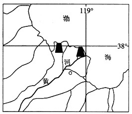 材料二:黄河三角洲示意图(下图)