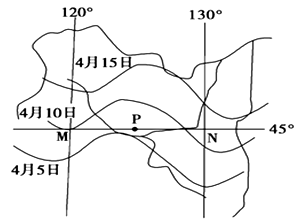 【小题1】根据图中经纬度位置可知,该地区位于我国东北地区,M地位于大兴安岭附近,N为小兴安岭附近,两地地势高,气温低,积雪融化日期晚;P位于平原地区,地势低,气温高,积雪融化日期早。