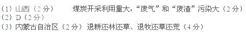 (1)自然资源损耗与环境污染损耗关联度最高的省区是_______________________,原因是__________________________________________________________________。(4分)
