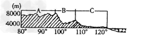 2、单选题 读“我国沿32 °N 所作的地形剖面图“,回答1 ~3 题。