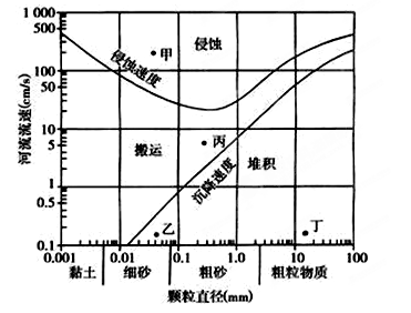 | | 颗粒直径(mm) | 河流流速(cm/s) |