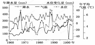 5、单选题 下图是“我国青海湖流域1960年以来降水、气温和水位变化图”,判断下列问题。