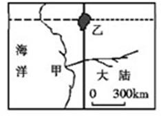 5、单选题  该图中虚线表示41°纬线,粗黑线为70°经线。读图完成题目。