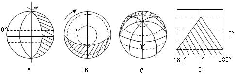 (1)表示全球昼夜平分的是图____▲____; (2)表示北半球夏至日的是图___▲__;