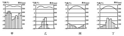 【小题2】下图中气温和降水的数据资料与上题图中P点气候特征相匹配的是( )
