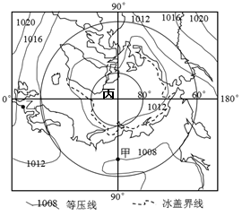A.甲地可欣赏林海雪原景观 B.乙地出现台风风暴潮 C.图中冰盖面积为年内较小 D.丙地可见成群的企鹅 |