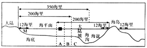 材料二:联合国海洋法公约第六部分76条明确规定了大陆架归属方面的问题。特别是第五款规定了:1、大陆架最大可以延伸到距岸350海里处。2、如果中间超过2500米深,就不算是大陆架的延伸。从日本冲绳出发向西的海底,客观存在一个深度超过2900米的冲绳海槽。