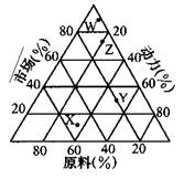 本题解析:本题考查工业区位因素分析。注意三轴坐标的读图方法,先以每条横坐标的原点位置,确定纵坐标,再按与纵坐标平行的原则,读数。 小题1:面包厂为市场指向型工业,故W的市场影响因素比重最大。 小题2:钢铁厂布局主要受原料和燃料影响,故选X点。