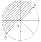 【小题2】日期的分界线有两条,一条是180°经线,另一条是0时所在地的经线。由阴影部分和非阴影部分日期的区别、地球自转的方向可知OB为180°经线,OA为0时所在的经线且为0°经线,所以甲地地方时为3时。