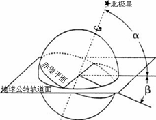 本题解析:目前,黄赤交角的度数是23°26′;图中角是黄赤交角是β;地轴与黄道平面的交角是66°34′;南北回归线的度数等于黄赤交角度数。