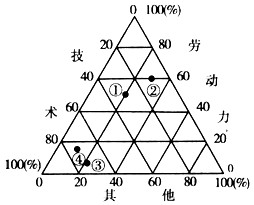 (2)下图表示不同工业部门的投入构成情况,材料一中的国家比较适合发展①~④中的____________和________________类工业。