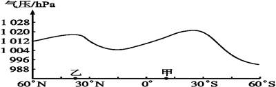 【小题3】从图中可以看出,此时乙地受副热带高气压带控制,盛行下沉气流,气候炎热干燥。