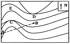 A暖流经过? B.寒流经过? C.寒暖流交汇? D.洋流背向流动 小题3:形成AB之间洋流的原因是 A.东北信风? B.中纬西风? C.上升补偿? D海水密度差异 参考答案: 本题解析: 本题难度:一般 3、单选题 读我国某市城区地租分布等值线图(a>b>c)。 参考答案:1. A 本题解析:本题考查城市功能分区。 本题难度:困难 4、单选题 下图为我国某区域等高线和等潜水位线图。回答: 参考答案:1.A? 2.A 本题解析:1.从等高线弯曲和河流流向可以看出,图中西北地区地形为山谷,向东南方向,地势变得比较平坦(等高线稀疏),并且变为山脊形状,为河流冲积扇地形。 本题难度:简单 5、单选题 下图为等高线图,已知等高距为25米,AB为一空中索道。读图回答1—2题。 参考答案:1、B 本题解析: 本题难度:一般 |