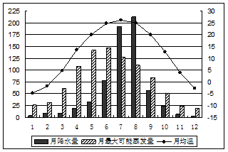 5、单选题 最大可能蒸发量是指地表在水分充足的条件下产生的最大蒸发量。下图示意某地1961-1990年间相关统计资料,读图完成下列问题。