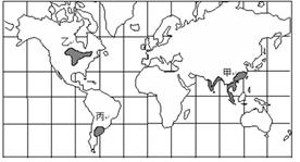 A.甲、乙地域类型农业单位面积产量高,商品率高 B.甲、丙地域类型农业科技水平高,劳动力投入量大 C.乙地域类型农业机械化水平高,规模大 D.丙地域类型农业的产品运输最方便 4、单选题 下图表示的四个区域均是世界上著名的农业生产区。读图完成小题。 |