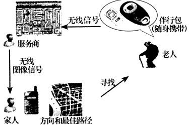 4、单选题 科技人员开发一种随身携带的伴行包,以便家人及时找到迷路的老人,下图反映了寻找老人的过程。读图,回答图中伴行包和服务商分别采用的技术是
