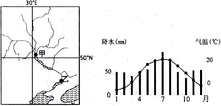 4、单选题 读某区域水系分布简图和甲地气候统计图,完成下列各题。 |