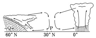5、单选题 下图为“部分大气环流示意图”。读图,完成1—2题。