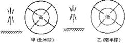 乙(约43°S) | 气温(℃) | 20.1 | 19.7 | 16.6 | 13.2 | 9.6 | 6.2 | 6.0 | 7.2 | 10.0 | 14.3 | 17.0 | 19.2 |