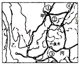 4、单选题 下图是我国某地区示意图,图中甲、乙、丙三处受流水作用显著从而形成的地貌分别是