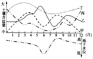 1、能正确反映华北地区土壤含盐量变化规律的曲线是