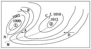 2、综合题 读北半球某区域等压线分布图,回答下列问题。(10分)