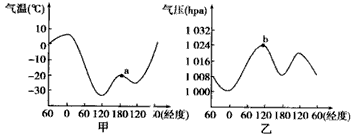 (1)两图表示的是60°N纬线几月(1或7)平均气温和气压的变化?简述判断理由。