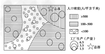 4、单选题 下图为“某国家四地区一企业分布示意图”。读图完成1 ~2 题。?