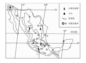 (4)乙区域北部河流比南部河流的水能丰富,而世界著名的水电站b却建在南部,说明主要原因。