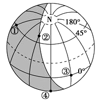 【小题2】此时,赤道上东半球范围内处于夜晚的那一段经度差( )