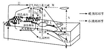 4、单选题 下面为“自然界碳、水物质循环示意图”,读图回答1—3题。
