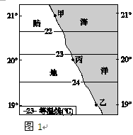 A.日落时刻甲地早于乙地 B.日落时刻甲地晚于乙地 C.正午太阳高度甲地大于乙地 D.正午太阳高度甲地小于乙地 2、单选题 图1 中圆圈为纬线圈66°34′,它穿过两个大陆北部,纬线圈中心点地球自转角速度为零。据图完成: |