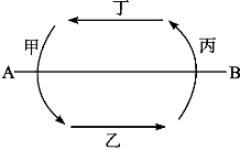 【小题2】若AB线是30°纬线,那么该海域位于中低纬度;根据世界洋流的分布规律:中低纬大洋环流北半球呈顺时针,南半球呈逆时针;由于该洋流运动呈逆时针,所以位于南半球;如果在南太平洋,丙洋流是秘鲁寒流;如果在大西洋,丙洋流是本格拉寒流;如果在南印度洋,丙洋流是西澳大利亚寒流,故选项D正确。