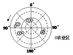 小题2:①、②、③、④四个地区的农业地域类型中,农(畜)产品商品率最低的是(?)
