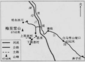 梅里雪山是世界自然遗产“三江并流”的主要自然景观,云南省正加紧建设梅里雪山国家公园。下图为该公园的部分景点示意图。