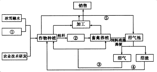 4、单选题 下图为我国某地区农业科技园区循环经济模式图。读图回答1~2题。