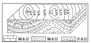 2、单选题 读“等温线及地质剖面图”(下图), 完成下列各题 |